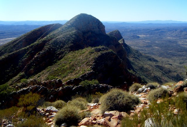 We climbed back up to the ridgeline and over a few small hills, heading for Hat Hill. Such a distinctive shape, we knew it when we saw it. We then dropped back down to Simpsons Gap for lunch and some rock wallaby watching. They are very small and agile, chasing one another up and down all over the boulder field. R and K turned up in the middle of the afternoon with cider and timtams all round.