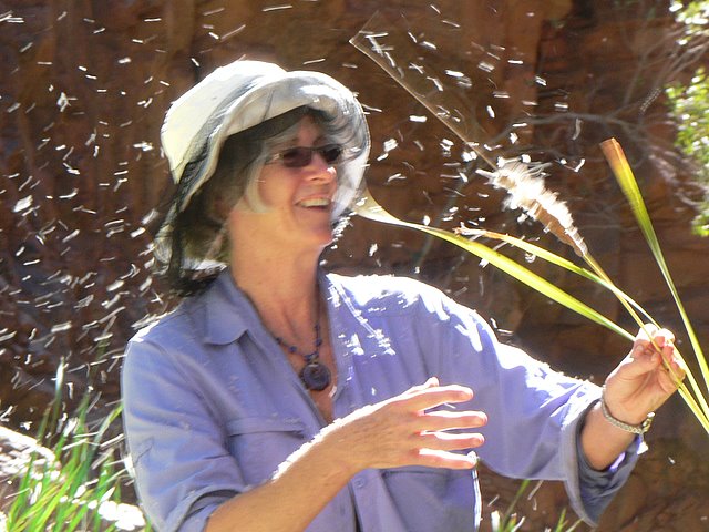 Rosemary and Keiran picked us up from the airport and drove us into town to find Val in the Todd Mall market, then we pottered around town reliving some of our central australian experiences. Olive Pink’s botanical garden was a highlight again with a writers festival underway featuring Kate Grenville and Linda Jaivin as speakers. We visited the Araluen centre collections, including a portrait of Albert Namatjira, and found the story of Geoff Barden’s involvement in the Papunya painting revolution. Geoff’s story stayed in Alison’s mind for days trying to reconcile how he could have made such a difference while the undermining and lack of support lead to his nervous breakdown and electric shock treatment. He used a 16mm camera to record the special moments and took the time to document the meanings behind many of the paintings. He died in 2003 of cancer, probably in his late 50’s.