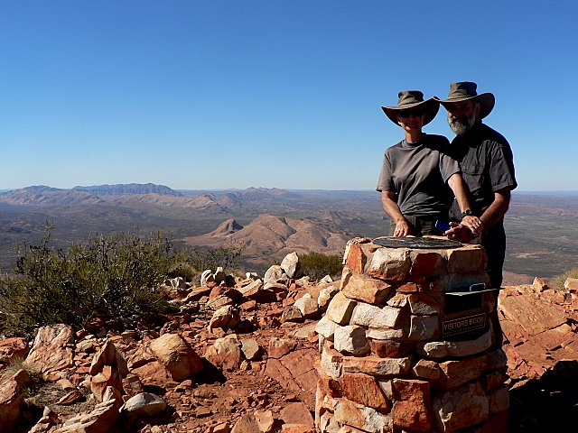 The Larapinta Trail is 230 km long, winding along high rocky ridges and through deep gorges in the Eastern MacDonnell Ranges to the west of Alice Springs. It is a remote wilderness in an arid landscape unchanged for millions of years with many areas of special significance to Aboriginal people. There are campsites and a few shelters, mostly with tank water every 4-6 hours of walking, but sometimes sufficient water has to be carried for 2 days plus an overnight camp. We took 17 days supported by Rosemary and Keiran with a 4wd vehicle meeting us at strategic locations for meals and camps, and we even managed a rest day with 2 nights at Glen Helen Resort. Another friend, Val, was also able to walk with us for the first week. The following diary comments are Alison’s reflections during the walk, with only minor editing for coherence.