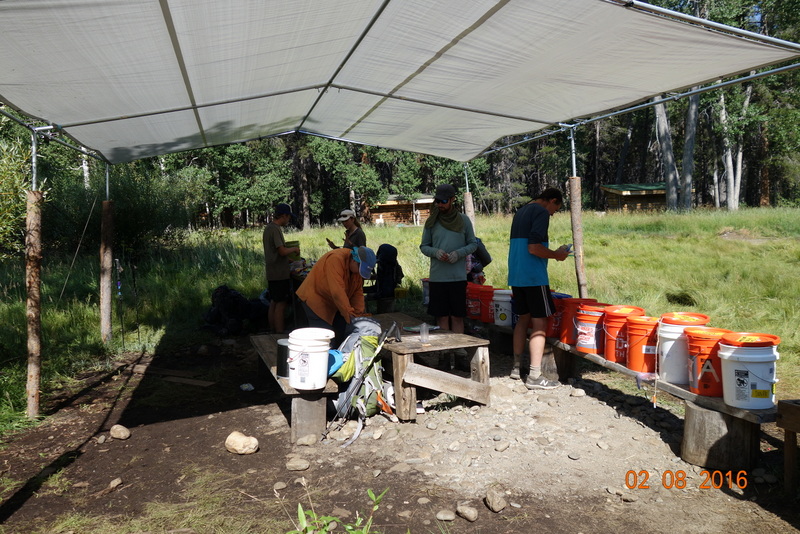 A 4 mile stretch to a bridge on the main road that seemed to go forever, then another .5mi up the hill to the store. A lovely welcome from Scott, with our food resupply waiting for us, as well as Todd and a couple of other hikers for company. We spent the afternoon on the shady deck watching the passing tourists, disposing of hamburgers, chips, hotdogs and margaritas after showers and real toilets. Todd did a shakedown for Dave Rummel, a 67 year old non-hiker who wanted to live the dream he’d been watching and reading so much about. He’d aborted his start from here and managed to hitch back but had left his poles behind as well. He mailed many kg of gear home but was going to try again from Lone Pine after buying new poles. We may see him later at Muir Trail ranch where he’s booked for the 29th. We camped above the store by a huge tipi where the other hikers had settled in.