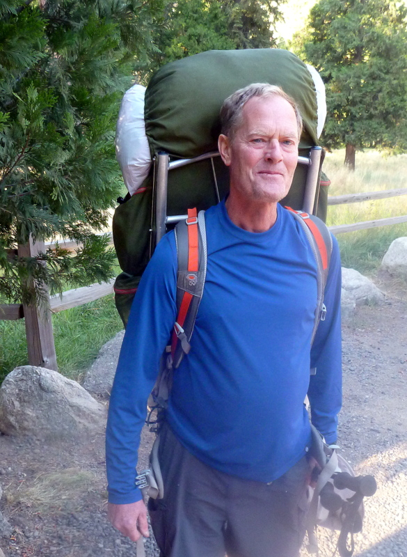 We took a very relaxing day for my birthday, hanging out on the deck boozing while doing repairs on Ali’s boots that were delaminating at the heels, my sleepmat with a hole, and my pack shoulder straps coming apart. A few too many repairs for so early in the trip. An exciting start to the day was seeing a juvenile bear sniffing around the cabins nearby. As soon as it realized I was watching it took off like a shot. Alsatian sized and tan brown. Our borrowed bear proof drums organised through Grumpy Bear’s didn’t materialise, so Scott very kindly lent us two of his, one brand new. Our load tomorrow has 27 lb of food, 3 gas bottles to get through 12 days to the Muir Trail Ranch, and 3 litres of water each. Heavy but not as bad as at Walker Pass.