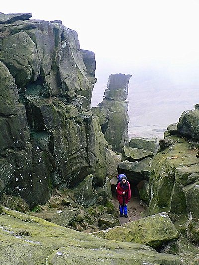 Again we start with a long climb, straight up from the village into low cloud with about 20m visibility. It is really scary, as the road is walled and we have to walk 2 km on the tarmac before heading on up onto the high moor. As we leave the road, we are accosted by a new-born lamb who is convinced we are her mother. We are at a bit of a loss to know what is the best thing to do, so we finally ran away, hoping that mum would hear the bleating.