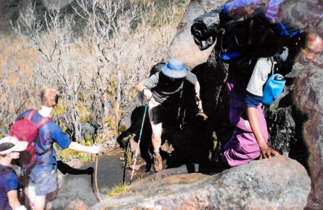 The Barranco wall climb had really worried two of our party as it looked far steeper than it really was. Steep enough and some exposed moves to make everyone take care with their footing and having to queue for the hard bits. A French party were particularly slow and refused to allow even the porters to go past, blocking the track.