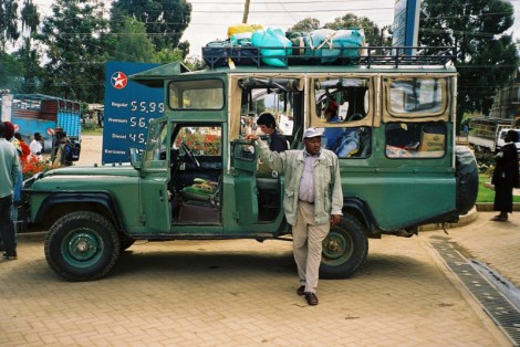 The porters walk behind the landy as we head down, it will return for them once we reach the bus, but we meet the bus early on as it blows off its radiator cap. Porters disperse to find it before we can carry on.