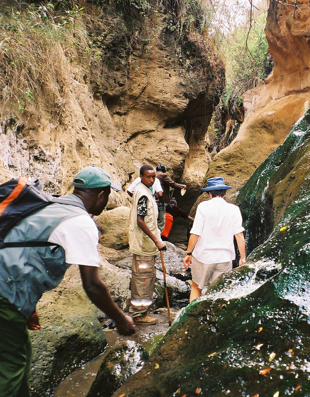 We were by then near the shelter where Samwell had lunch ready. After a break and food, we were taken on another loop walk up to the head of a gorge, then down the stream for about an hour before heading back to the bus. Good views in the gorge but no wildlife, despite stories of the leopard last week. The gorge was made up of tufa, solidified lava ash, so very soft, but with chunks of obsidian up to about 1 meter across.
