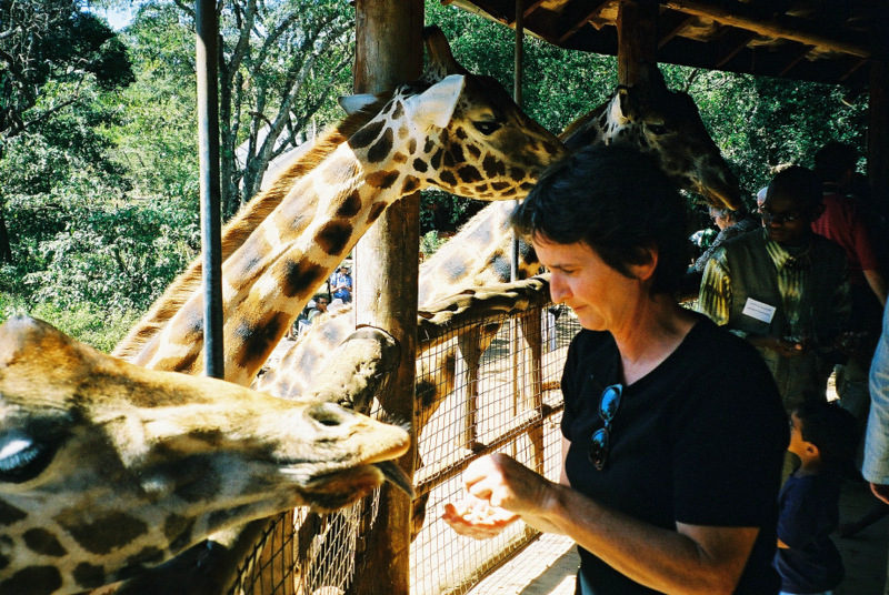 We shopped for some books and chocolate before a quick lunch and back to the Into Africa office for our tour. Karen Blixen’s house and rooms (out of Africa fame), a Rothschild’s Giraffe breeding program and then a display village “Bomas of Kenya” for a song and dance act, gymnasts, and an unintelligible commentary I think celebrating the diversity of African culture. The giraffes were the highlight for the afternoon, mainly their tongues as they licked food pellets off your hand, reaching 40 cm out to do so. Rough and slimy at the same time as well as being extremely flexible. Soap and water with a hand towel were then provided! They have several tame breeders, and the young animals are released after training to survive in the wild.