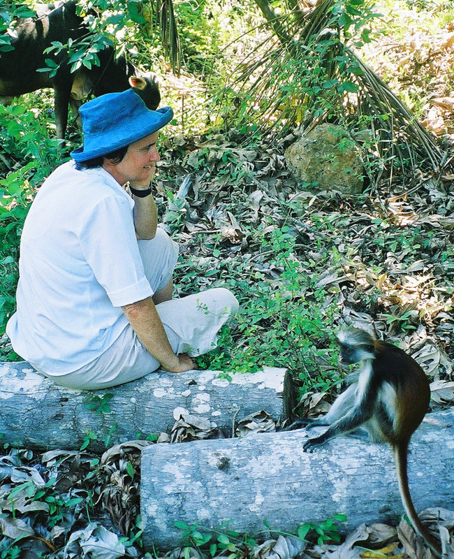 Breakfast at 8 and a walk around the grounds with Sami looking for monkeys. We found one group of Pied Colobus perched in a tree, but the Sikh monkeys could not be found. We passed a pig in its own elevated shed, the ground underneath deeply covered in fruit pods.