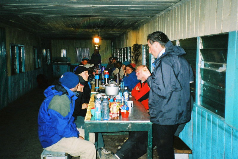 We are back at the hut for lunch after a glissading descent on gravel. It’s a noisy afternoon with groups of walkers and Italian climbers passing through. It seems that Swahili, like Italian, is also only spoken at high volume. A couple of objectionable Scots arrive, trying to do the peak cheaply, pleading poverty to their African guide!