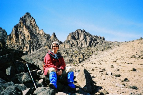 It’s 81/2 hours at Alison’s pace up the MacKindar valley to the hut at the base of the main climb with all Mt Kenya’s peaks towering over us. Batiaan and Nelion are sheer peaks for rock climbers only, which at their altitude (5200m) would be a real challenge. We will be heading off to the left to Point Lenana, which is the trekking summit at 4985m. Glacial snouts are poking out of several valleys.