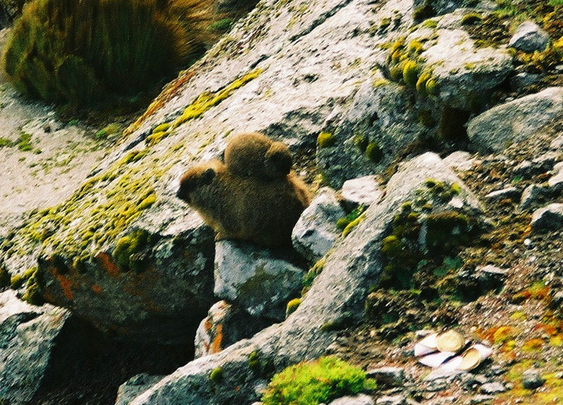 Many Rock Hyrax line the path with Alpine Chats begging for scraps. We see two Grey Duiker feeding, but they are so flighty they twitch to run at every sound and movement. There are buffalo tracks, but gladly no sightings.