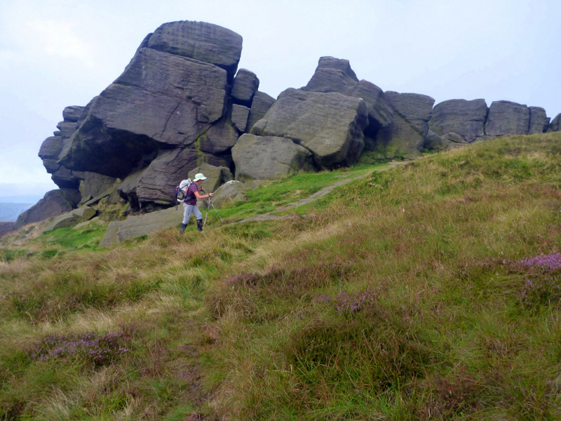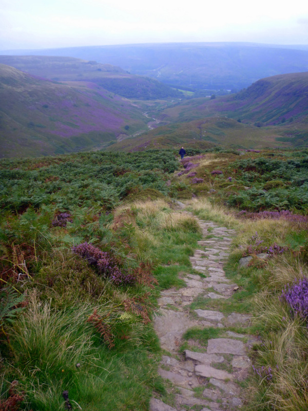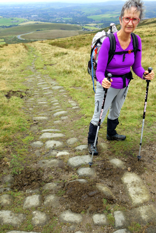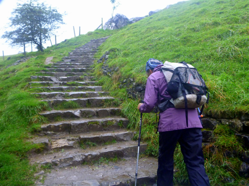 Terry gives us an early breakfast and we’re off walking up the valley by 8. An hour or so of gentle climbing has us at the foot of Jacob’s ladder, a stone stairway climbing steeply 300m up to the main ridge and the high point of Kinder Low (I have no idea why it would be called that) at 633m.