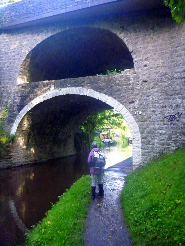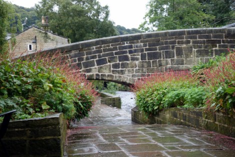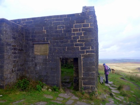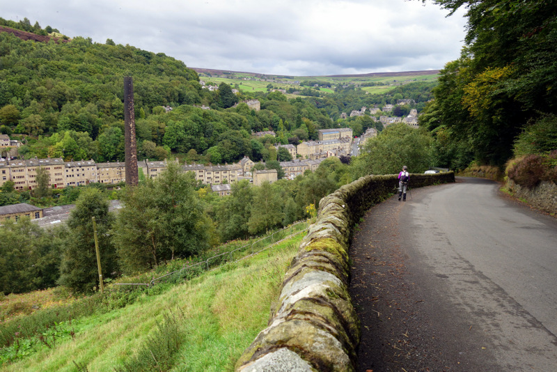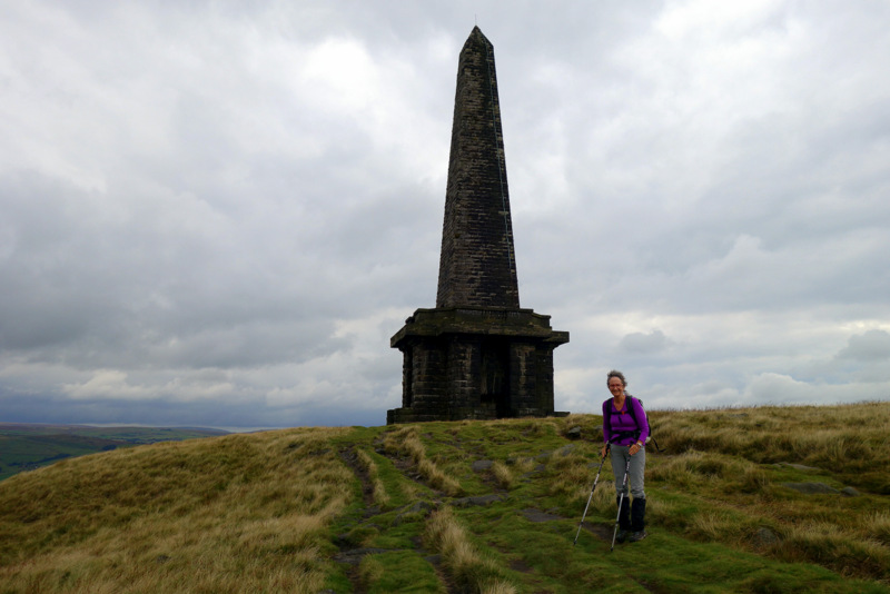 The Way was dead flat after lunch, following reservoirs and dam walls for many miles before the stone tower of Stoodley Pike came into view. After another hour or so of hilly ground we can finally appreciate the size of the thing. This 30m high column was constructed as a memorial for the victory over Napoleon, but after destruction by lightening, and cancellation of construction after his escape, the actual completion took many decades. An internal spiral staircase climbs in darkness up to the balcony level 7m above the ground, but we decline the climb. From here we descend 400m on lanes and roads more and more steeply as we approach the valley bottom and day’s end.