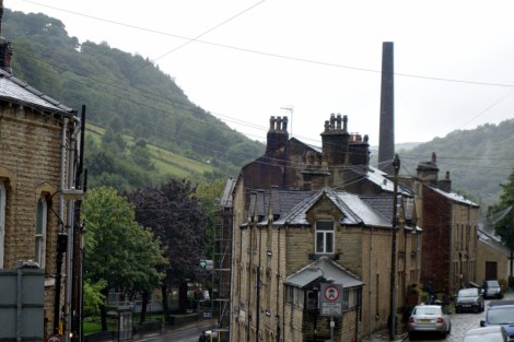 Hebden Bridge is a town of weavers, originally with hand looms, then powered by water wheels then steam engines burning coal. Chimneys are everywhere.
