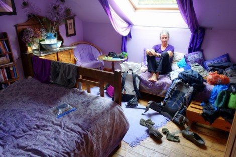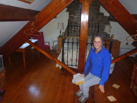 The road way improves, but it was still a long way down on a hard surface to reach Garrigal and the Post Office BB. We received a warm welcome and were happy to hear that the pub next door had just reopened and would be able to cope with feeding us, even if just a cheese toastie. That went well with Guinness and cider before going back next door and crashing. Another couple of walkers arrived at 7:30, after taking even longer than us for the crossing after being unable to start before 10am. We commiserated but pat ourselves on the back for coping well with the hardest day of the walk. This B&B was also memorable for all the signs and instructions posted on every available surface. I counted 10 in the shared bathroom, and several more in the bedrooms. She has obviously had problems with some people, but I boggled at the one which said “please take off your cycling shoes before entering the shower”.