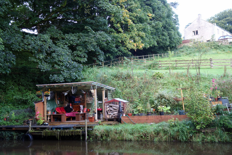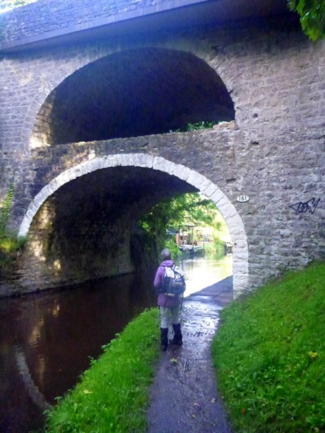 Tracey was able to show us a disused railway line which lead back to the main Way avoiding about 5 km of busy road. Then wet paddocks and following a canal crowded with boats and moorings. A couple even had “lounge rooms” built into their docks.