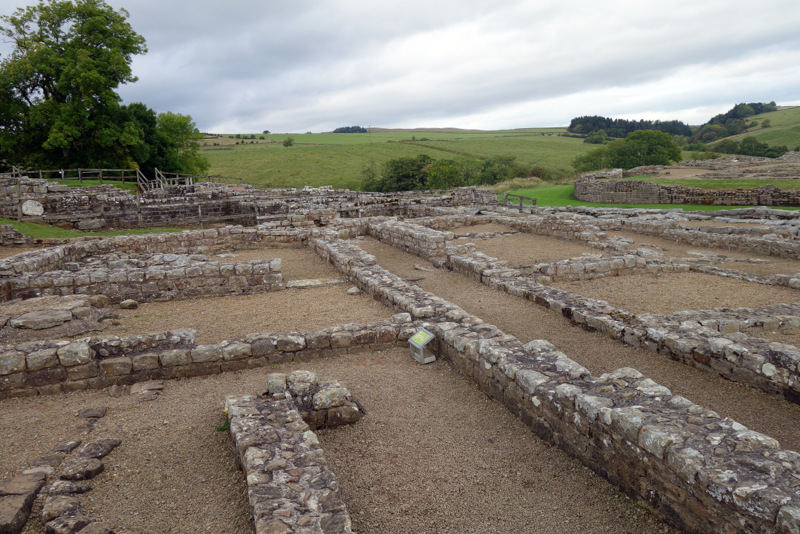 The wall follows the top edge of the cliffline, so it was constantly undulating, and we were on the lookout for sidling sections where we could skip the climbs. Today was another nero of 12 km to give us time to explore the possibilities of Hadrian’s Wall, so after arriving early at Twice Brewed, we were able to take a bus to Vindelandia, 3 km away, to spend the afternoon.