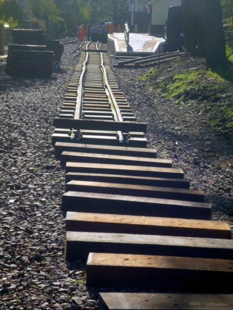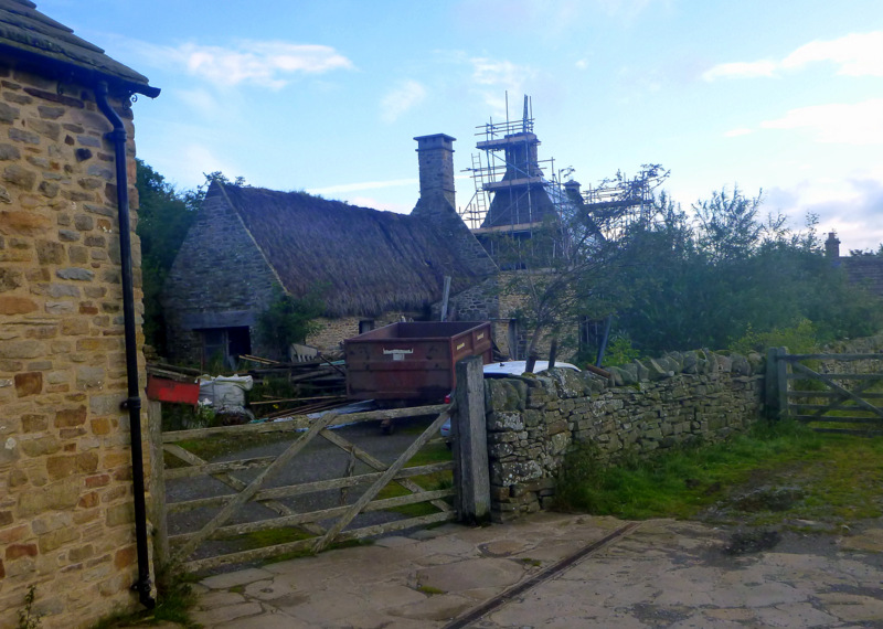 Our first frost was making the grass glow white in the early morning as we breakfasted before heading out. The Way out of Alston goes up and down through many farms and bogs, but there was an easier option for about 6km following the South Tyne railway to where it crosses the Pennine Way. The rail trail is flat and dry so we don’t hesitate to take it. The line is being rebuilt by volunteers, and is only functional for about 4 km. A work crew is laying ballast as we reach the railhead and sleepers are roughly laid in position for the next leg of steel.