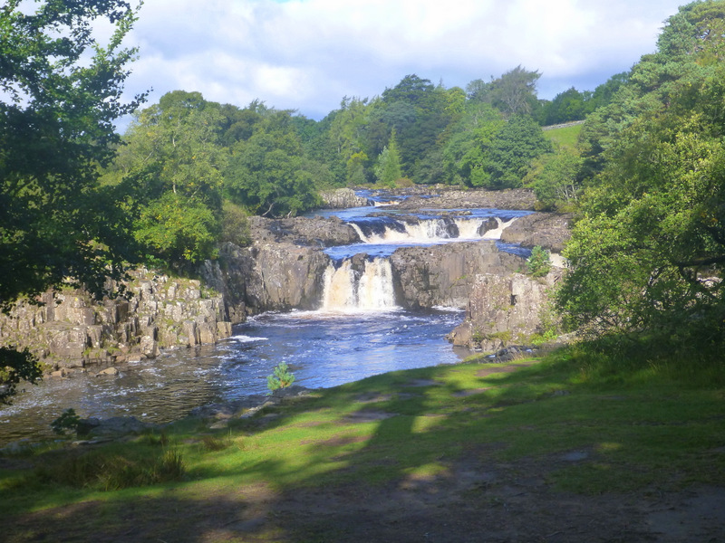The next day the Way followed gently along the Tees river for the whole day, passing Low Force and High Force waterfalls where the river crashes over bluestone edges.