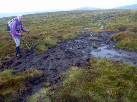We were making 3 miles an hour along the rail-trail, so it was a bit sad to head back into the boggy ground and a climb over another Black Hill. Bog over the boot tops this time, so we were very grateful for some more hard track for the last few kms to Greenhead pub. After the frost, the day was clear, so we’re walking in shirtsleeves for the first time since day 1.