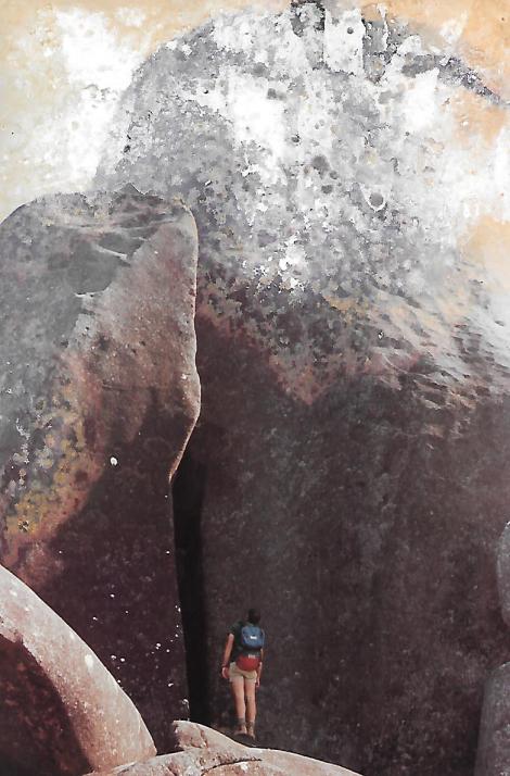 A well-earned lunch on top and down we go back to the Meg camp and pack for the 4 hour return to Cape Trib. First we had to climb the main range through another boulder field that required pack hauling, crawling through crevices, ducking under house size lumps and balancing along knife edges. There must be an easier way but I haven’t yet found it.