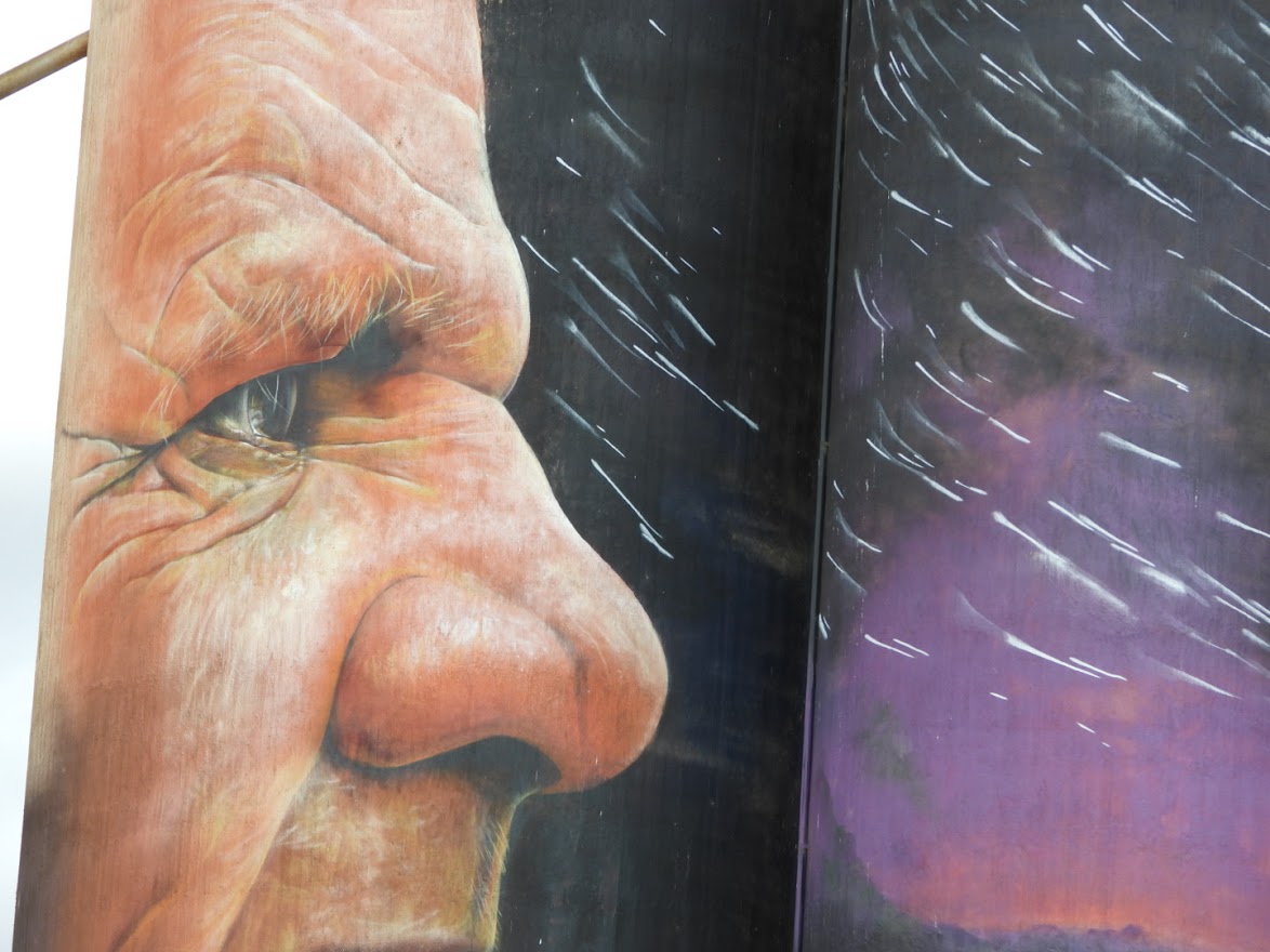 On down south on the highway to Cowell to find everything closed at 12. Everybody at the footy in front of a painted silo with a camel, a farmer and an eagle (I think). Fish and chips and a drink at the pub along with half a dozen fat and juicy oysters. Yum.