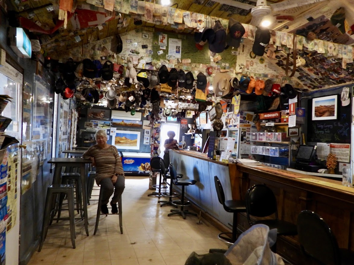 Back to William Creek pub for dinner as another treat on a great day out. Goat curry for me, while Sharon went for a monster steak and ate it all!