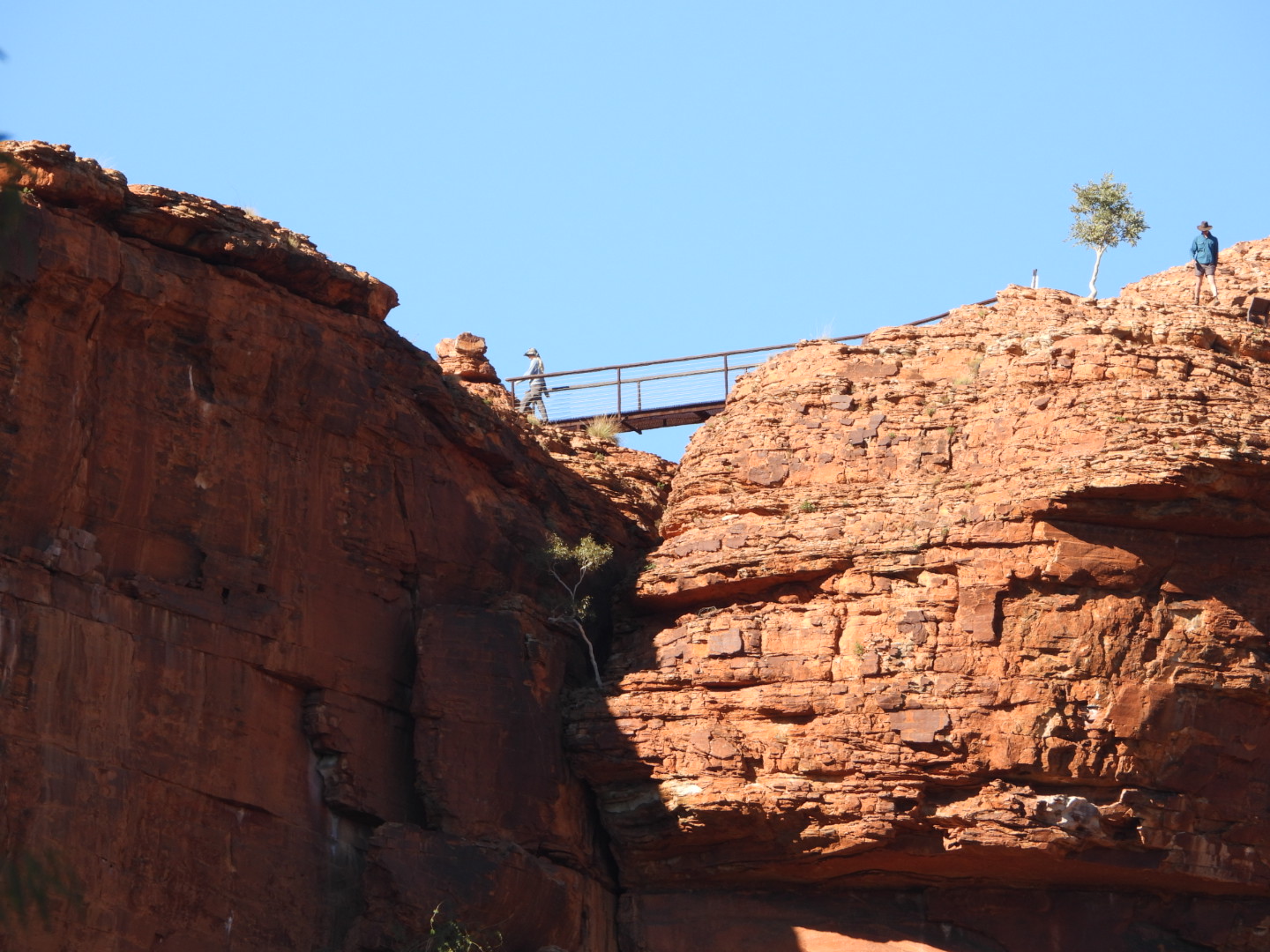 Thursday 27th we picked up and rolled on down to the Kings Canyon Resort. Hundreds of camps at every level up to 1000’s a night. Helicopter tours above the gorge, turning it into a war zone. Concrete paths up the creek bed to about half way, but not getting near the waterfall at the end. Signs saying that security cameras were watching to make sure everyone stayed on the made path. Huge carpark where once was the camp site. The Discovery camp area is about 6 km from the gorge. It all looked to me like a money grabbing exploitation of a natural resource that should be looked after as a National park.