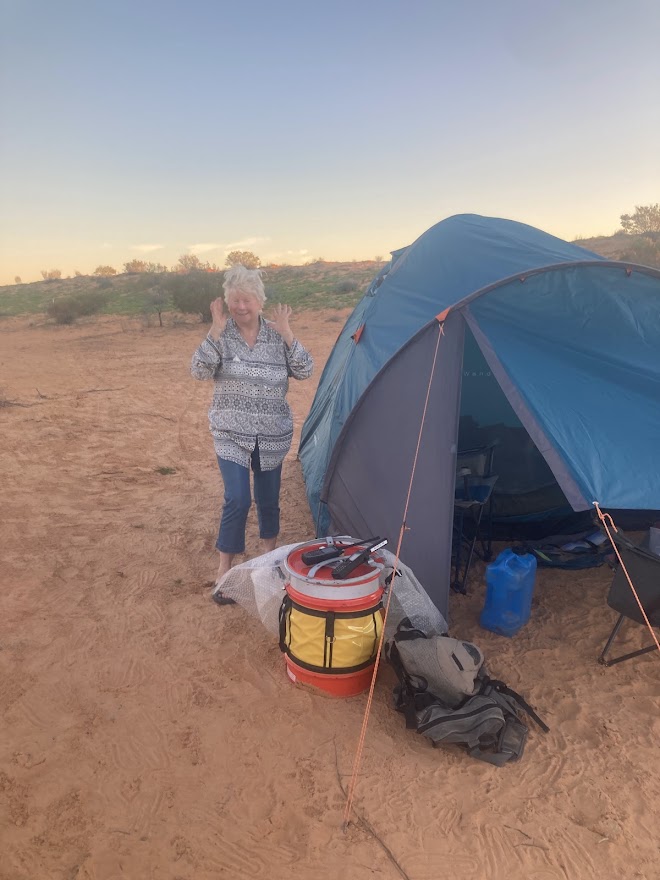 On a good gravel road through to Santa Teresa, where we were able to call ahead and after a few calls, managed to find a van park with available unpowered sites. Well out of Alice at Temple Bar, but quiet until the dufduf music started up across the creek on Saturday night. I undid some purse strings on Friday and spent up big on a new texting plb, starlink internet and a latest model iPhone, as well as a big load of food and alcohol. So we now have three avenues for calling for help and staying in touch.