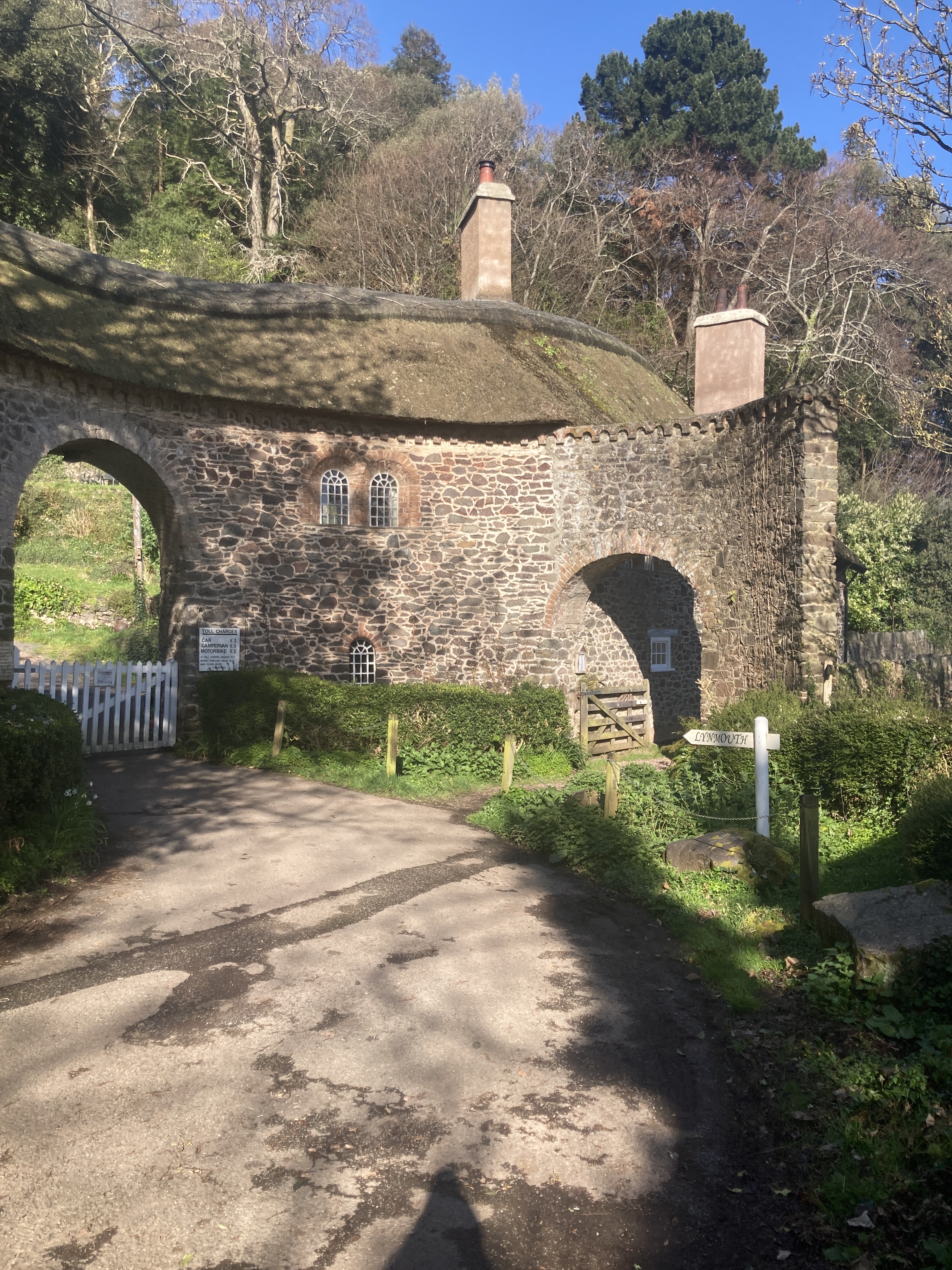 I found the footpaths leading back to Porlock weir, and was able to stay well off the main road, joining the trail at a toll road, gated with a £2 honesty box. The path sidled up and across an escarpment, never actually topping out until it approached Lynmouth where it had to cross a headland. I think the path was once a packhorse trail, deliberately left below the top to avoid the wind and to avoid being seen. Staying out of the wind was a real blessing as most of the trail was in shade and when it emerged into the blast, the Atlantic wind sucked out all my warmth. The forest was mostly composed of rhododendron, considered a weed here, so a mass flowering would be stunning but the only flowers I saw were reds and pinks on single trees in private gardens. Some prickly holly with bright red fruit added to the colours on display.