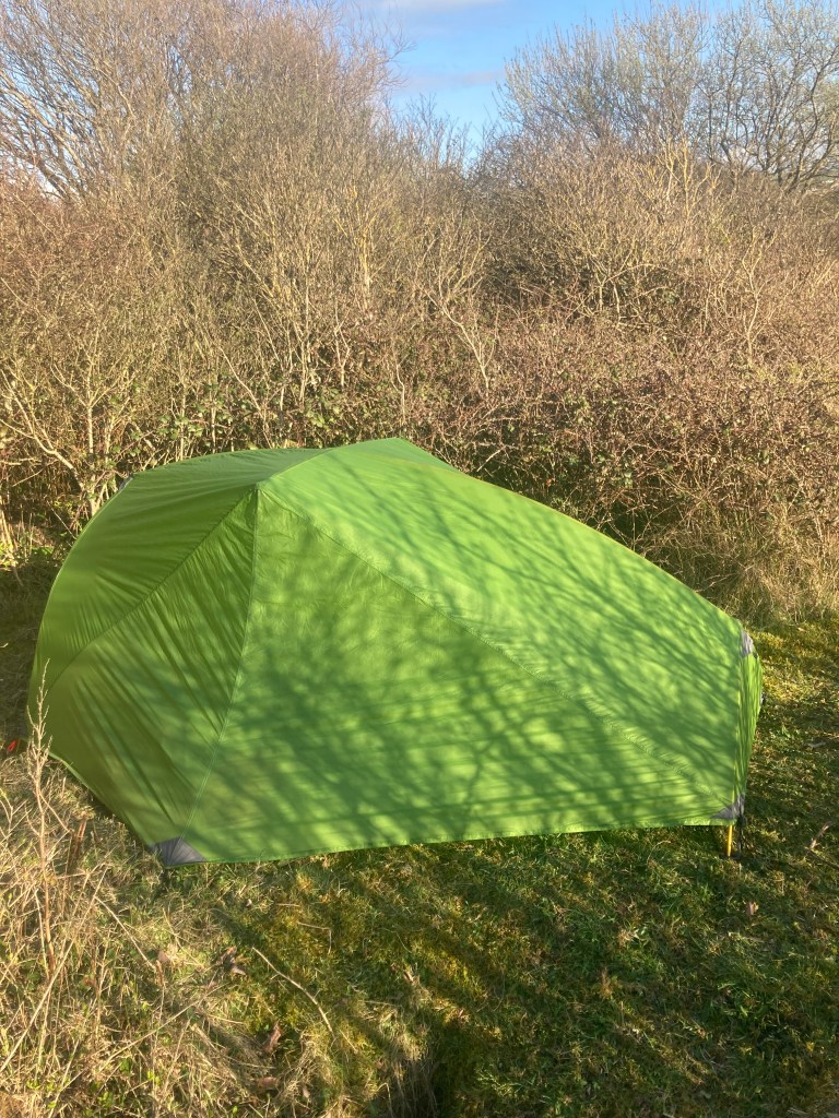 The season must be starting as I’m starting to see more hikers on the trail instead of dog walkers. One even stopped for a chat! I overtook another couple who were looking for a place to wild camp, but were too scared to be alone! I left them and strode off the main trail up into the dune system and found a low spot in a briar patch that almost hid me from view. Then several pairs of walkers came up my access track, ignoring me dutifully. My tent is such a garish green that it’d be impossible to miss. Pasta and coffee for dinner then kept hunting holes in my sleeping mat. It stayed up all night, so Success!