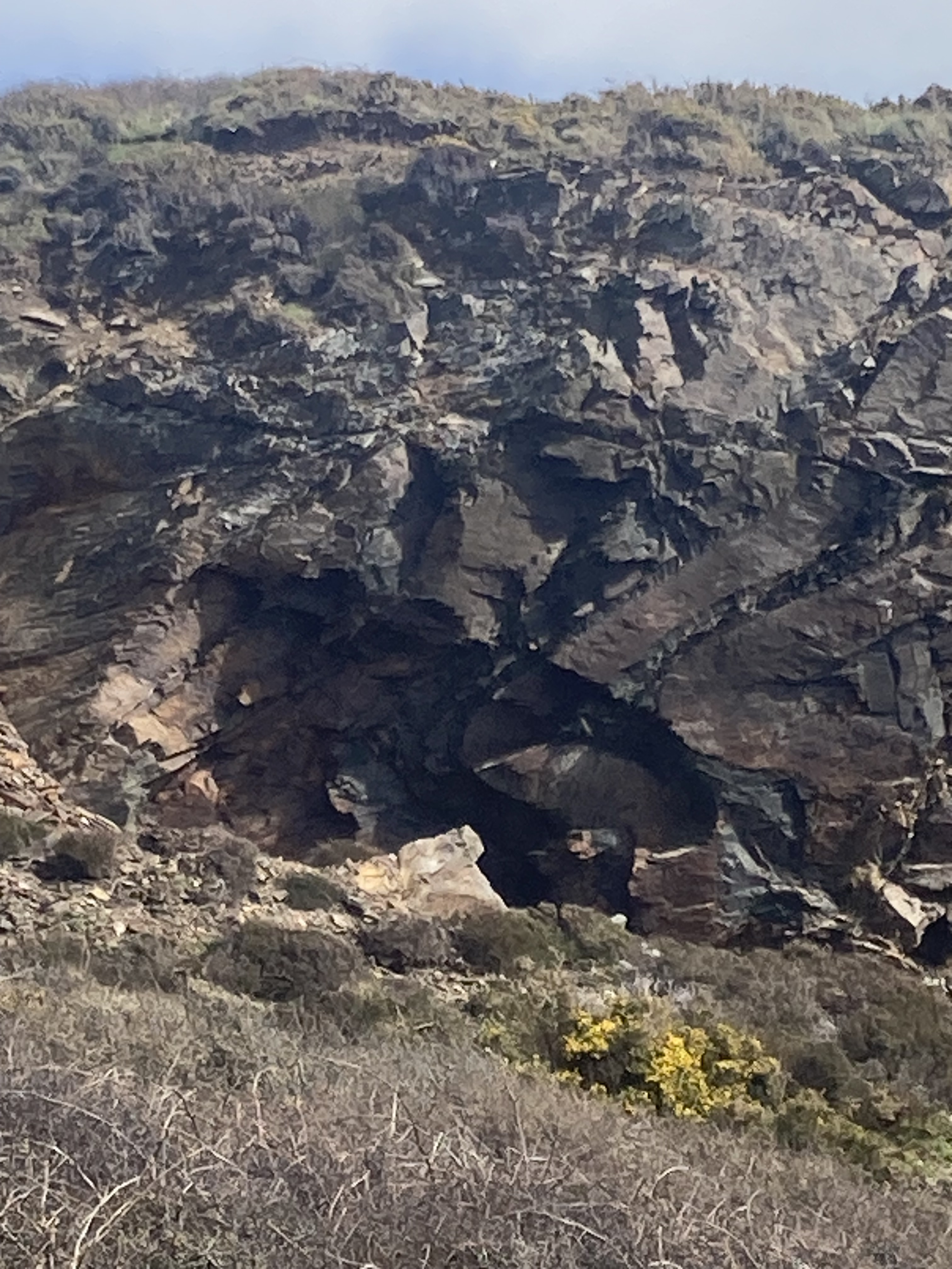 Heavy industry dominated most of this stretch of coast, with mine shafts going out under the sea for a mile from land. Hundreds of shafts, large and small, and clefts in the cliffs which were presumably seams of ore. Many were fenced off, barring access to gaping black holes. Others were left open.
