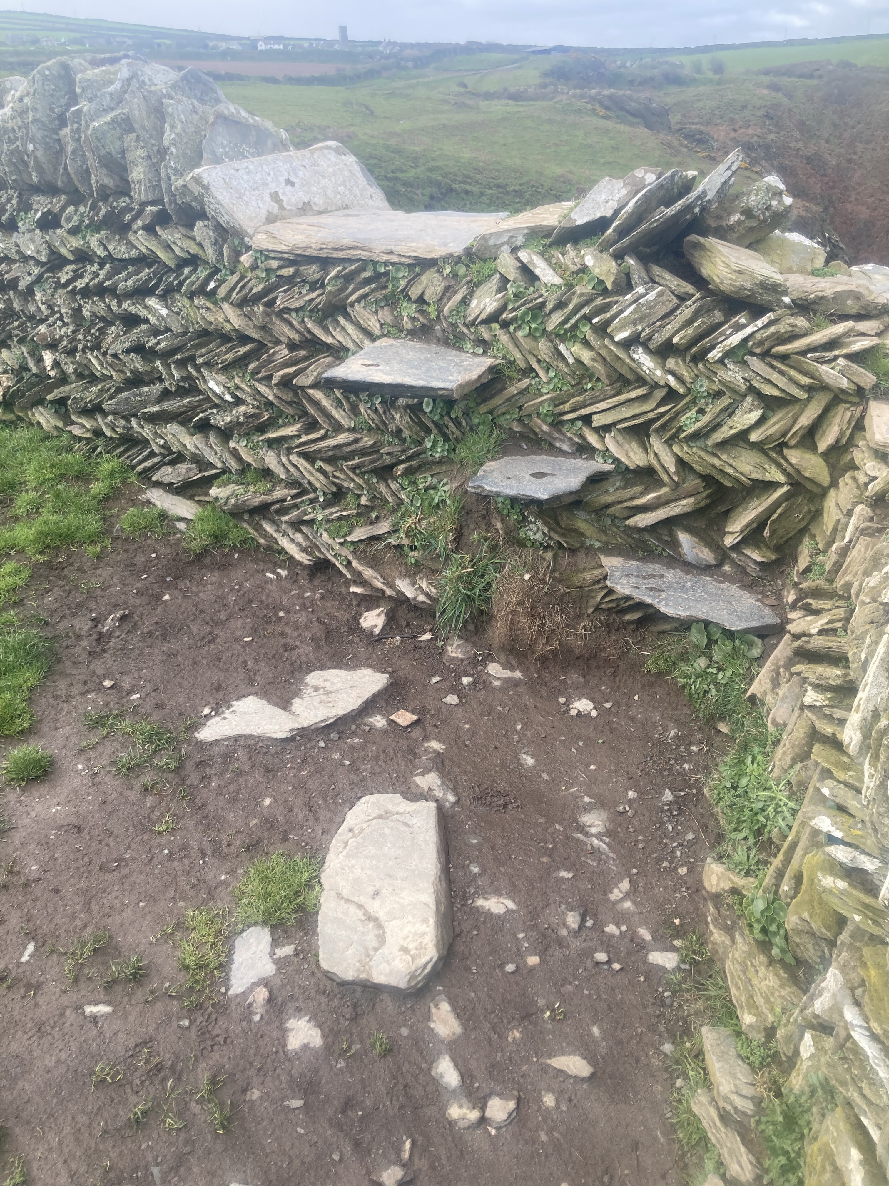 I started the day with two long climbs with a really nasty cross wind, fortunately blowing onshore, so not trying to send me off the clifftops, except when there was a sudden lull, and I would lurch toward the cliff to regain balance. The trail followed the pasture edge, so only limited shelter from the gorse hedgerows. Easy walking then for a couple of hours, then 4 more climbs before my turnoff to Morwenstow and its 13th century pub and church surrounded by graves. The Bush Inn has been an accommodation house since 950AD! So the overhead beams were a problem, but only in the core area. I had a lovely room facing west with full sun coming in the window. I joined another hiker, Daphne from Holland, for dinner. A wonderful fish stew with warm bread and a chocolate fondant. No lunch today and didn’t even notice.