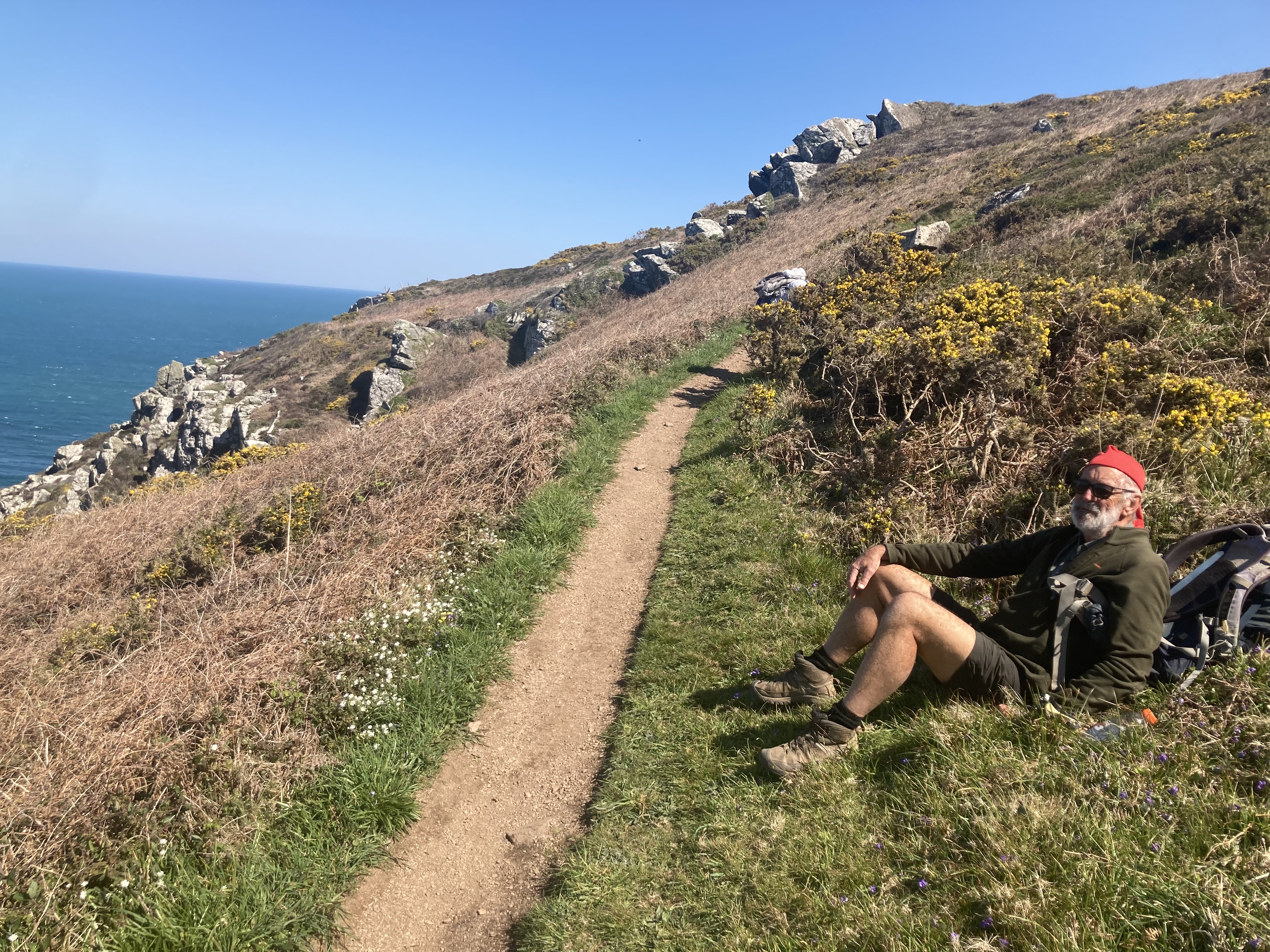 Made it to The Lizard, England’s southernmost point, and the last café for lunch. After lots of small ups and downs and managing to go off route and into some scrub bashing to get back on the path without climbing back up. It had looked like a good track from the top, but that was largely due to most people going down, then returning, so the track gets more worn.