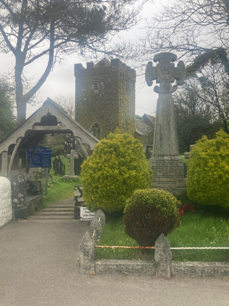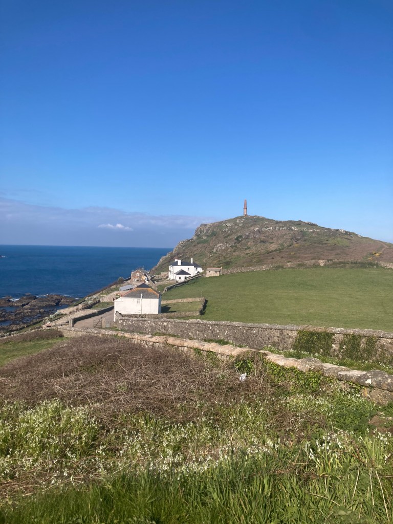 After Perranporth, mining residue was everywhere. Chimneys and foundations looking like castle ruins. Several attractive coves along the way, one even had a recently closed tourist mine. Several caves in the cliffs along the beaches looked to be manmade. A manned coast watch station on St Agnes head and down into Chapel Porth for lunch on a croque monsieur. Cheese toasty to you. More climbing to an exposed campground on a ridge crest. But it’s sunny, so I’m sitting outside to write this. I’m even wearing a sunhat.
