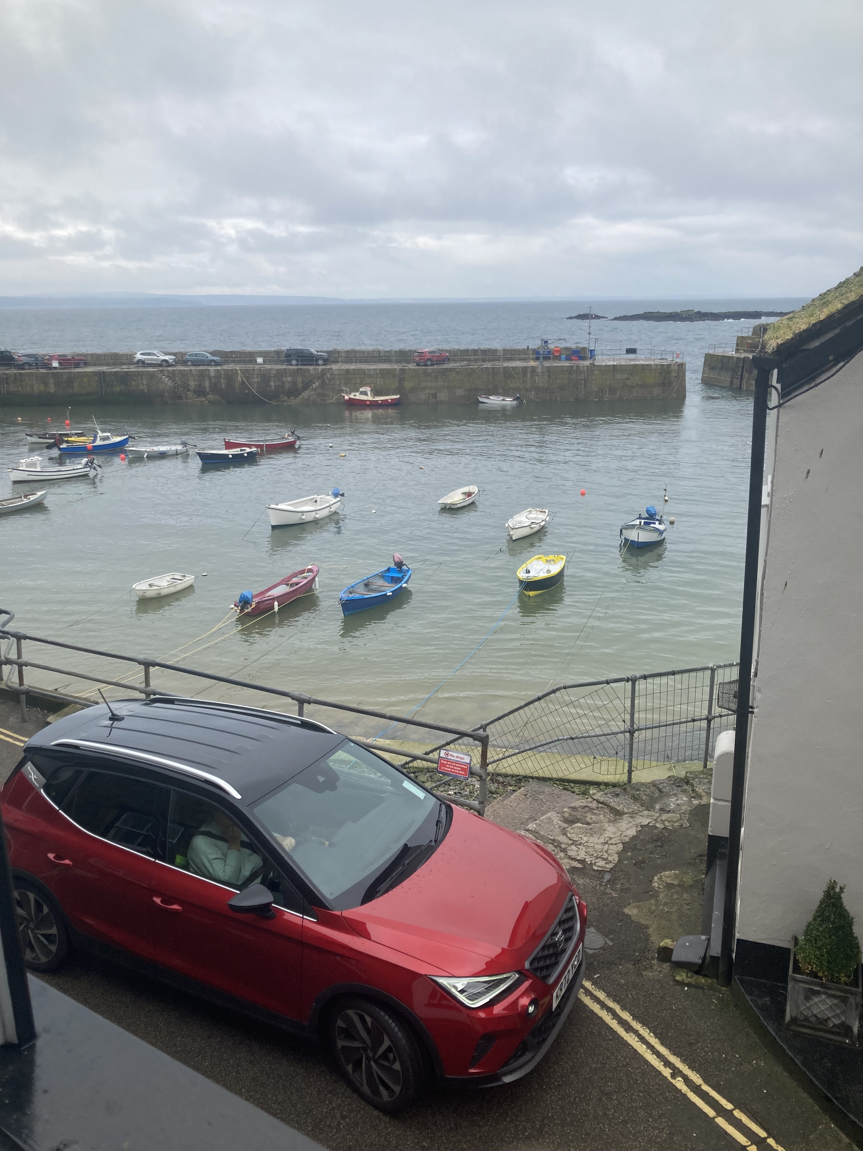 Another bleak day until about 2 when the drizzle stopped and the wind eased off. So down to the village for fish and chips on the foreshore without a parka for the first time.