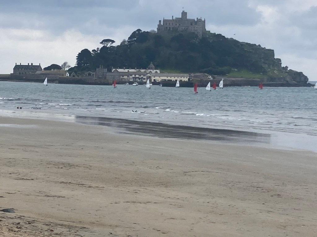 Started the day off with a good breakfast from the pub after a poor sleep, probably due to the three pints of Guinness with dinner last night. Easy walking on hard paths to Marazion and views of Mont St Michael across the bay. Ferries were running continuously, but not exciting enough for me to leave the trail. Carried on, on good paths to Perranuthnoe and a café with a conservatory for lunch. So hot under the glass, I even checked that the heaters were turned off. The track continued past several beautiful stone houses and around several headlands to reach Praa sands and a long ridge walk up to the cold and windy campground. Found a flat spot near a hedge windbreak and set up by 3.